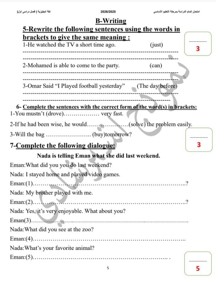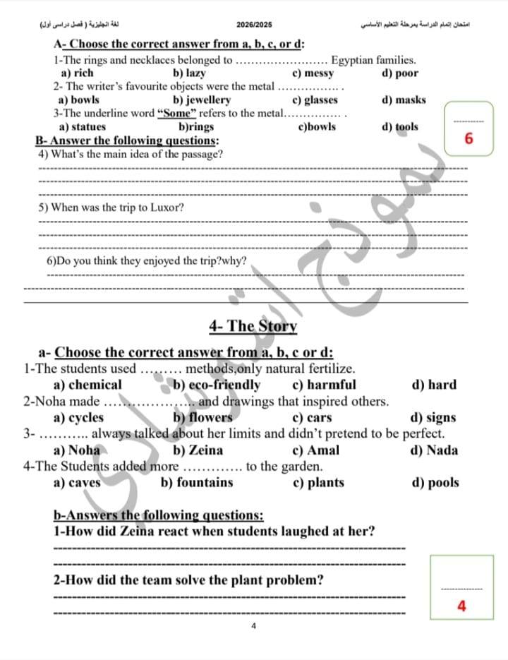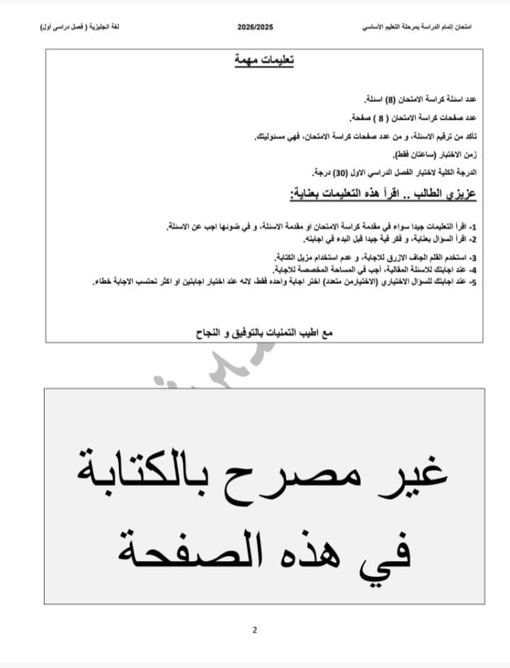 نماذج استرشادية لامتحان اللغة الإنجليزية لطلاب الشهادة الإعدادية 2026 بنظام البوكليت