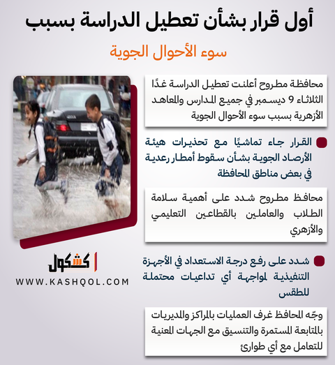تعطيل الدراسة في محافظة مطروح
