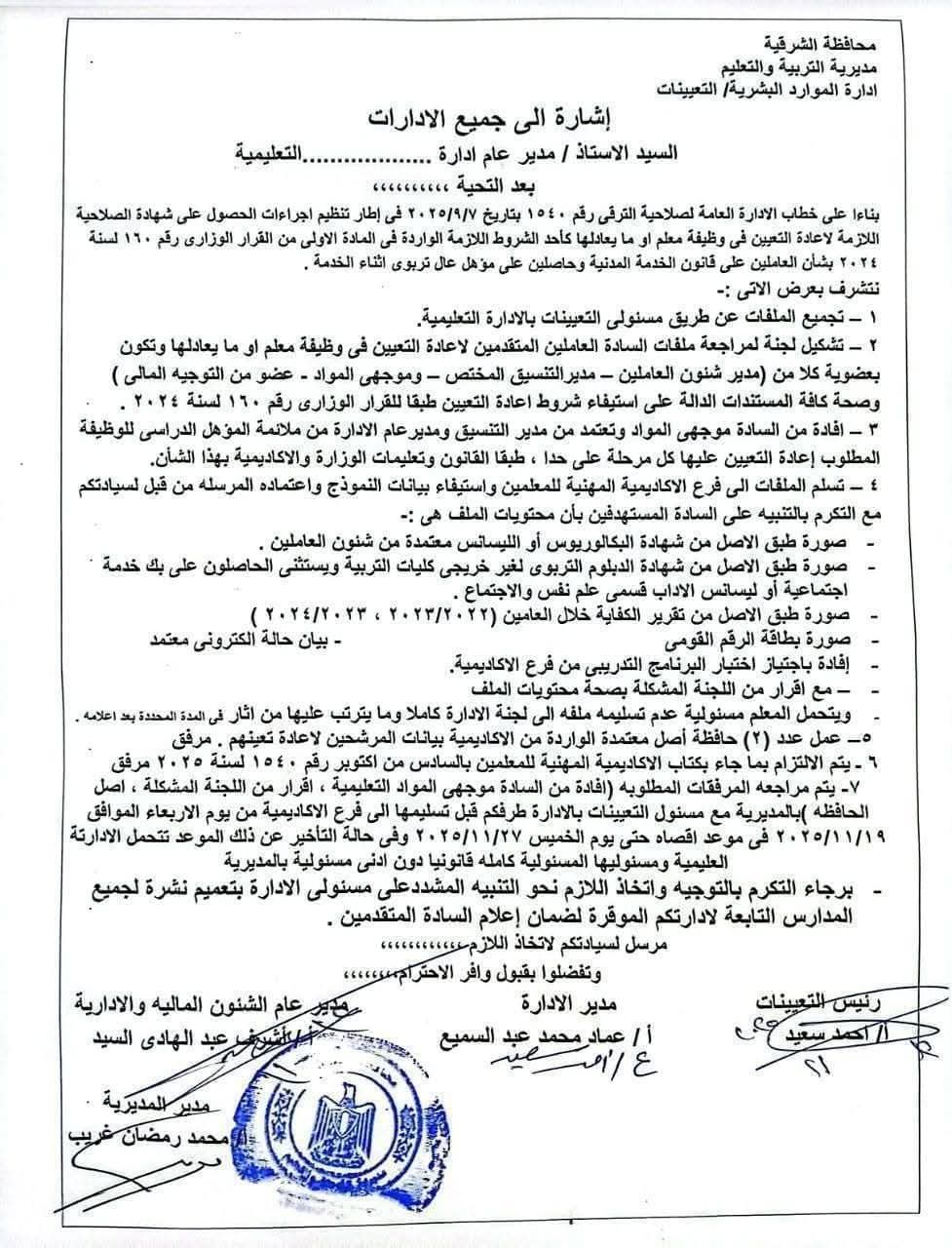 - يتم الالتزام بما جاء بكتاب الأكاديمية المهنية للمعلمين بالسادس من أكتوبر رقم ١٥٤٠ لسنة ٢٠٢٥