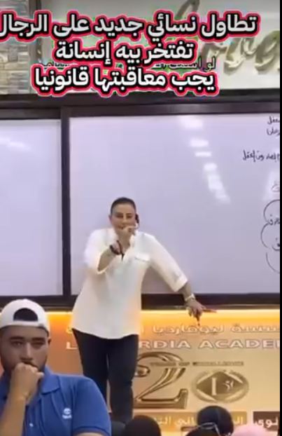 وظهرت المعلمة التي تُدعى الدكتورة سماح صبحي، وهي تشرح للطالبات داخل سنتر دروس خصوصية، درسًا في مادة الفلسفة والمنطق، وقالت: “كل الرجال أندال”، ورددت الطالبات خلفها “كل الرجال أندال”، لترد عليهن قائلة: “لا لا، شكلكم هتُعنِّسوا كده، أحمد راجل، إذًا أحمد ندل”.