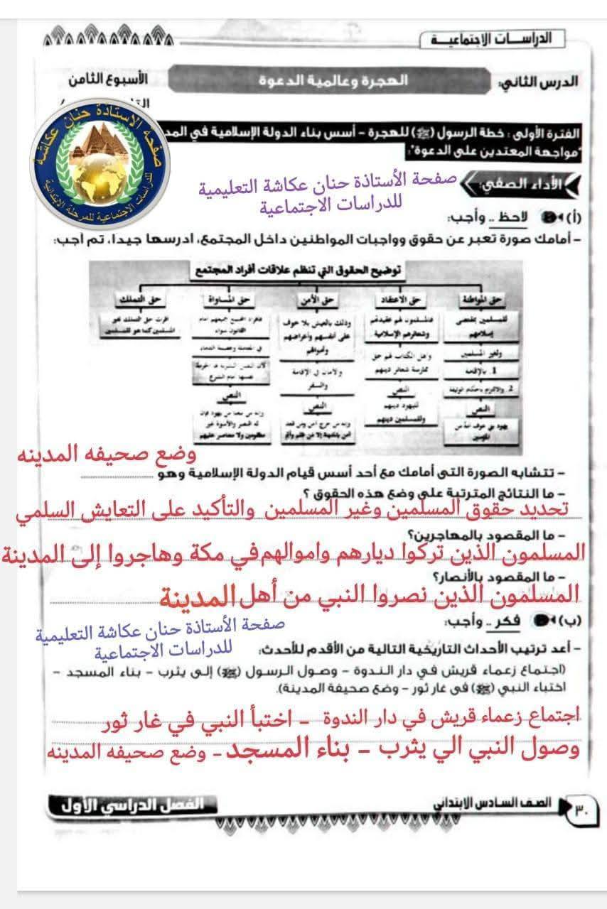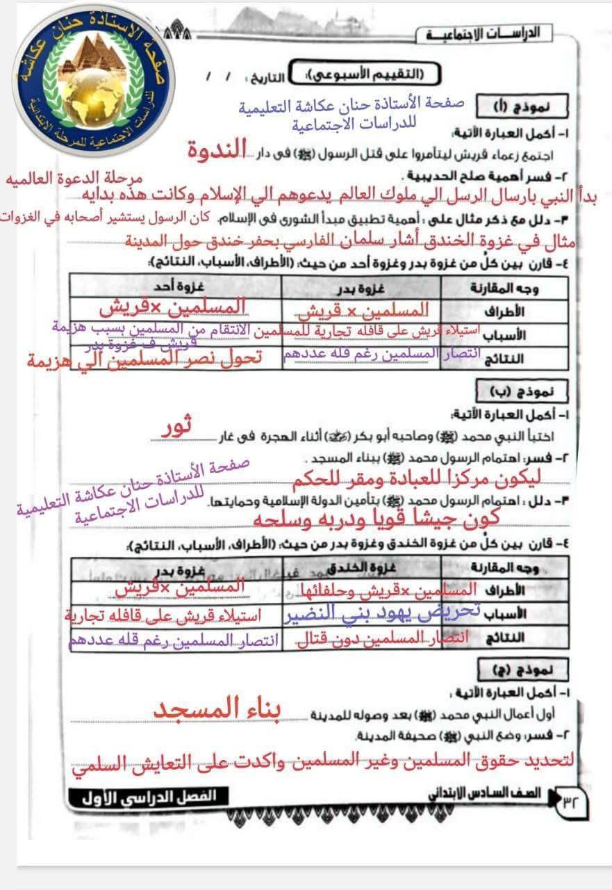 ويمكن الحصول على حل تقييمات الأسبوع الثامن بمادة الدراسات الإجتماعية لطلاب الصف السادس الابتدائي، من خلال مطالعة الصور التالية: