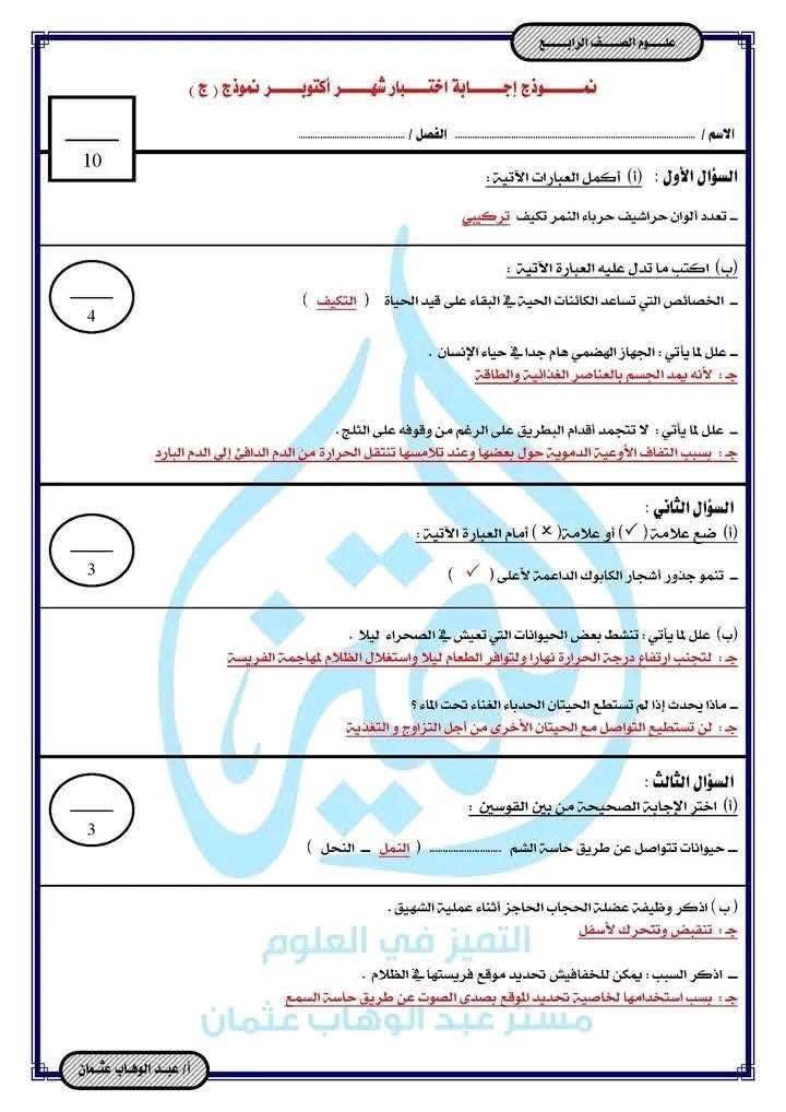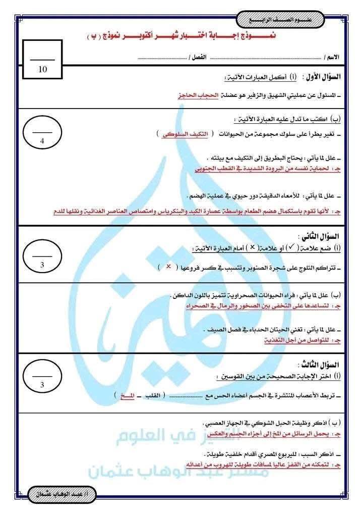 نماذج امتحانات شهر أكتوبر 2025 بمادة العلوم لـ الصف الرابع الابتدائي، ويمكن الحصول على نماذج امتحانات شهر أكتوبر 2025 بمادة العلوم لـ الصف الرابع الابتدائي من خلال مطالعة الصور التالية: