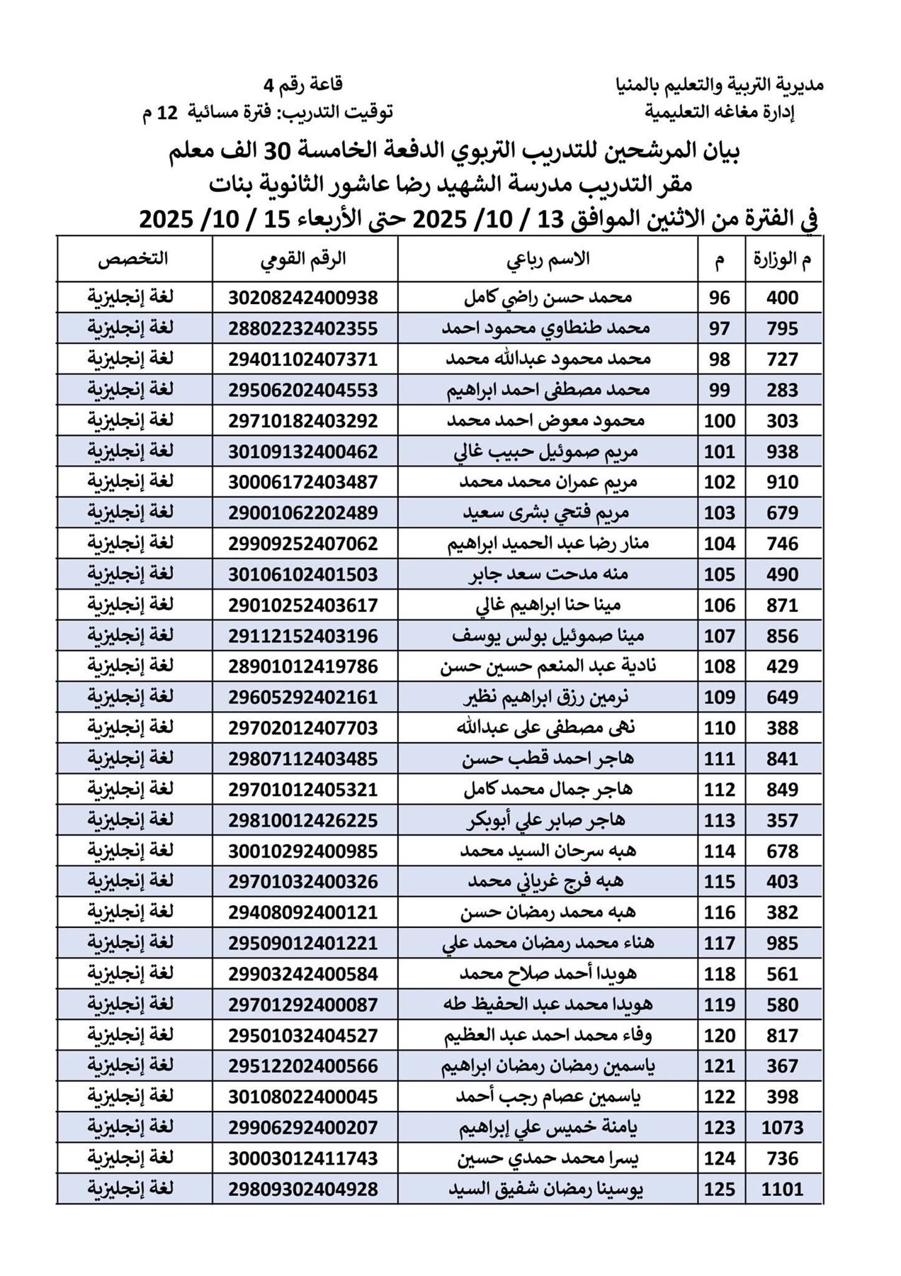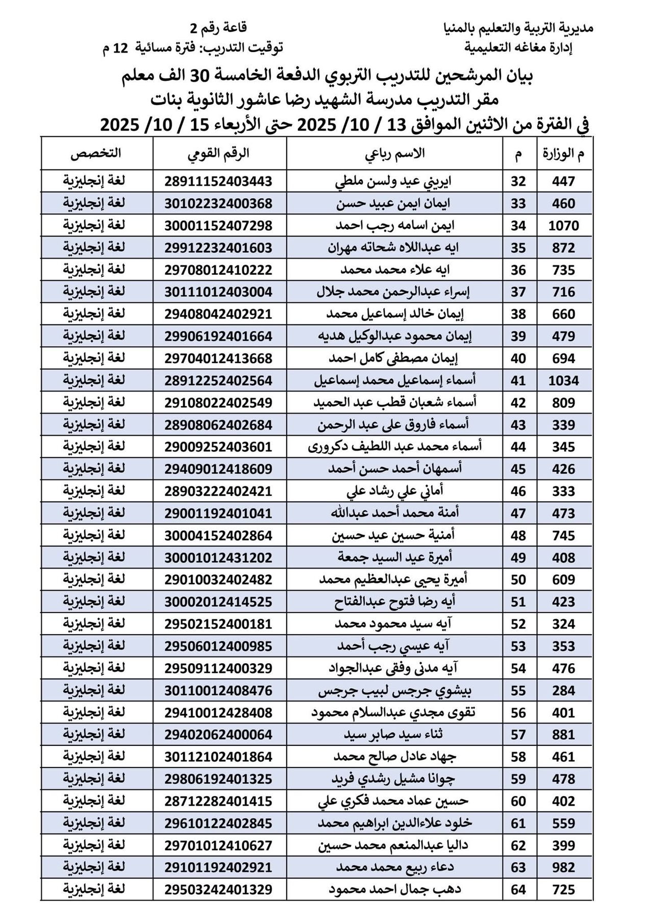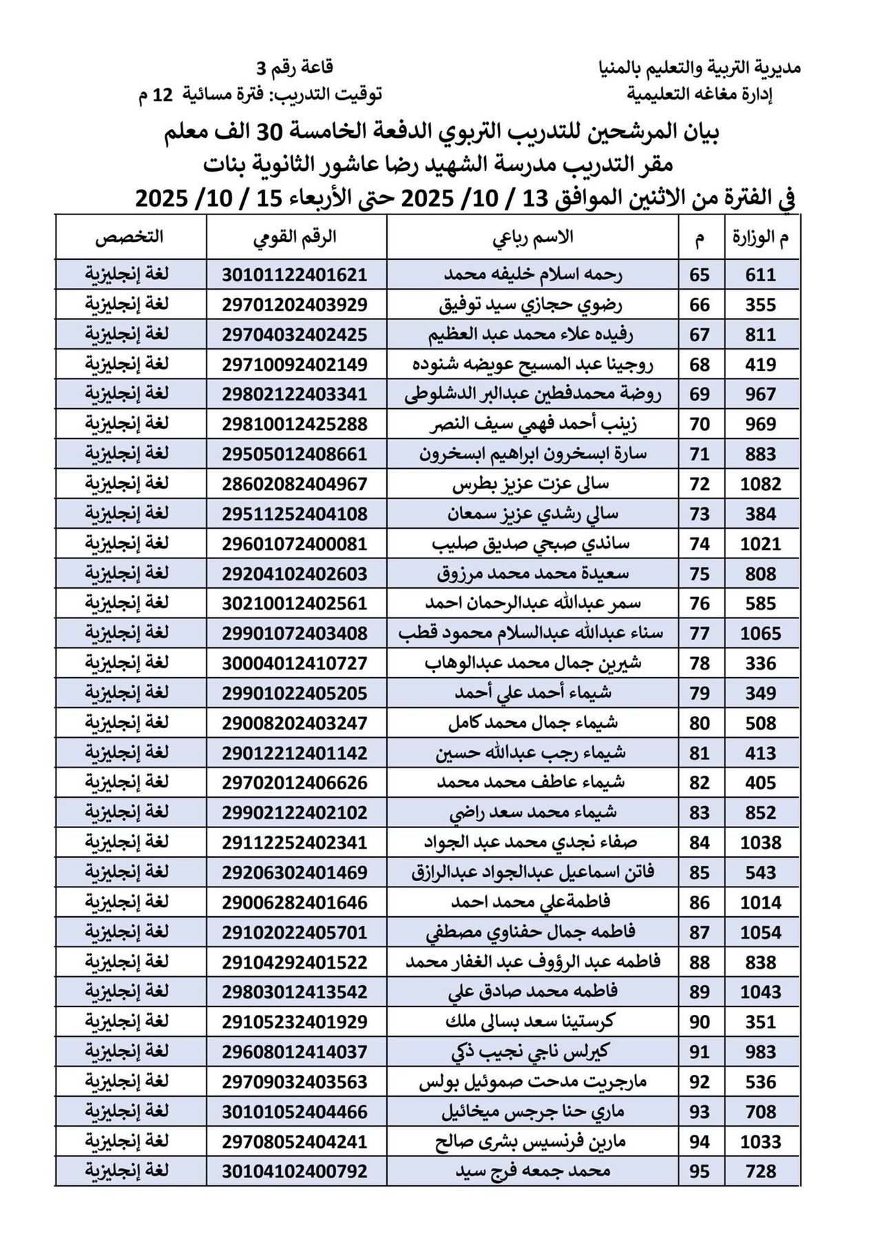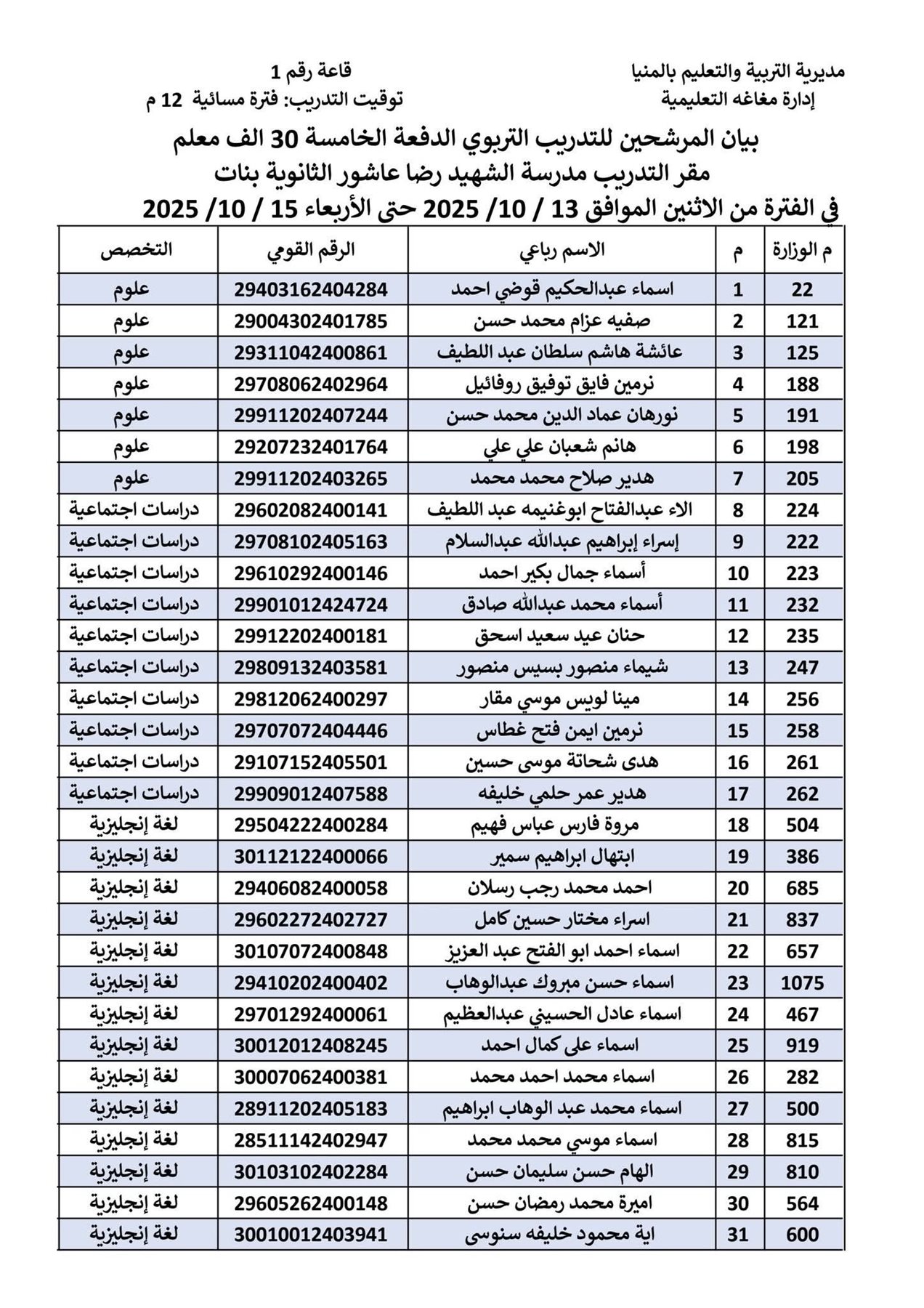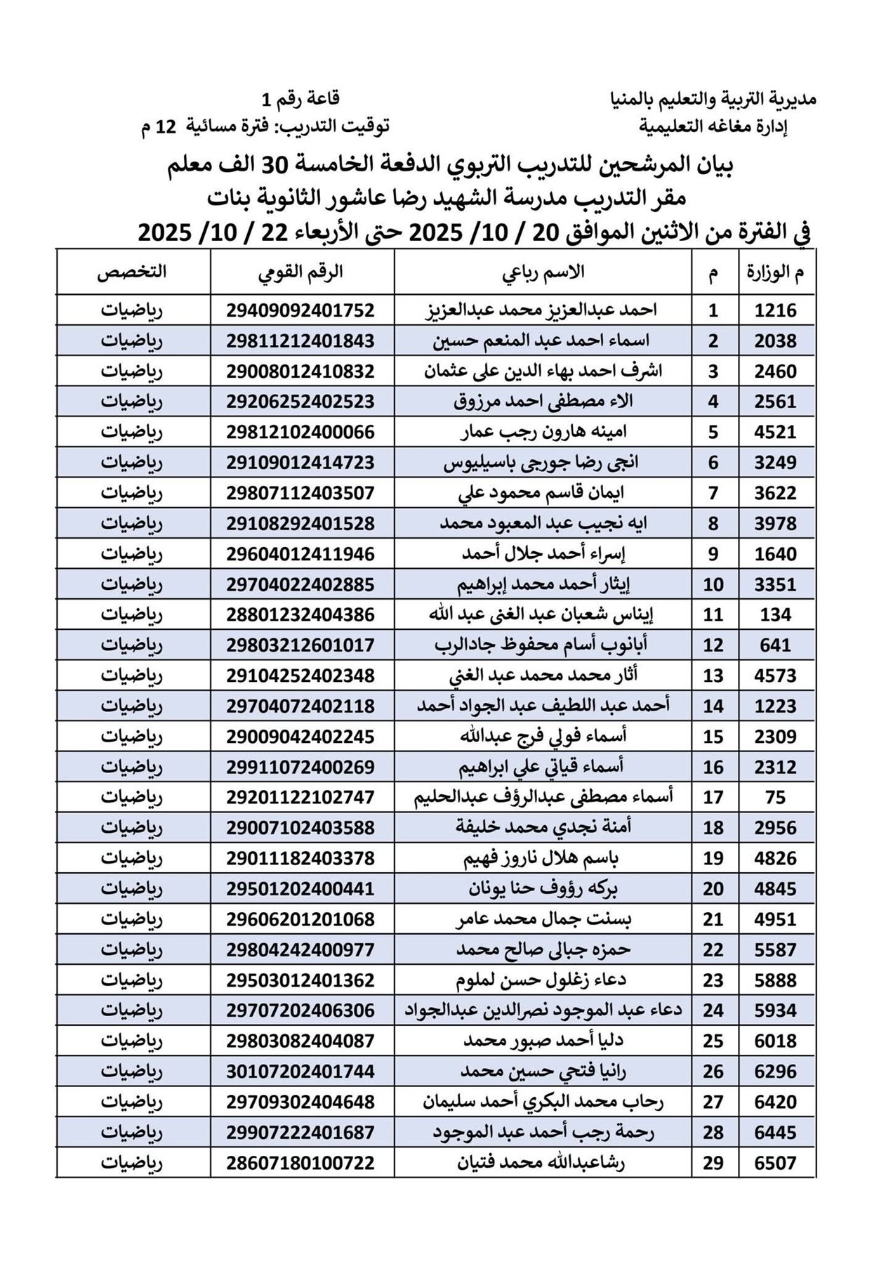 و جهته من لم يجد اسمه بالكشوف التوجه إلى قسم التدريب بالإدارة التعليمية التابع لها.