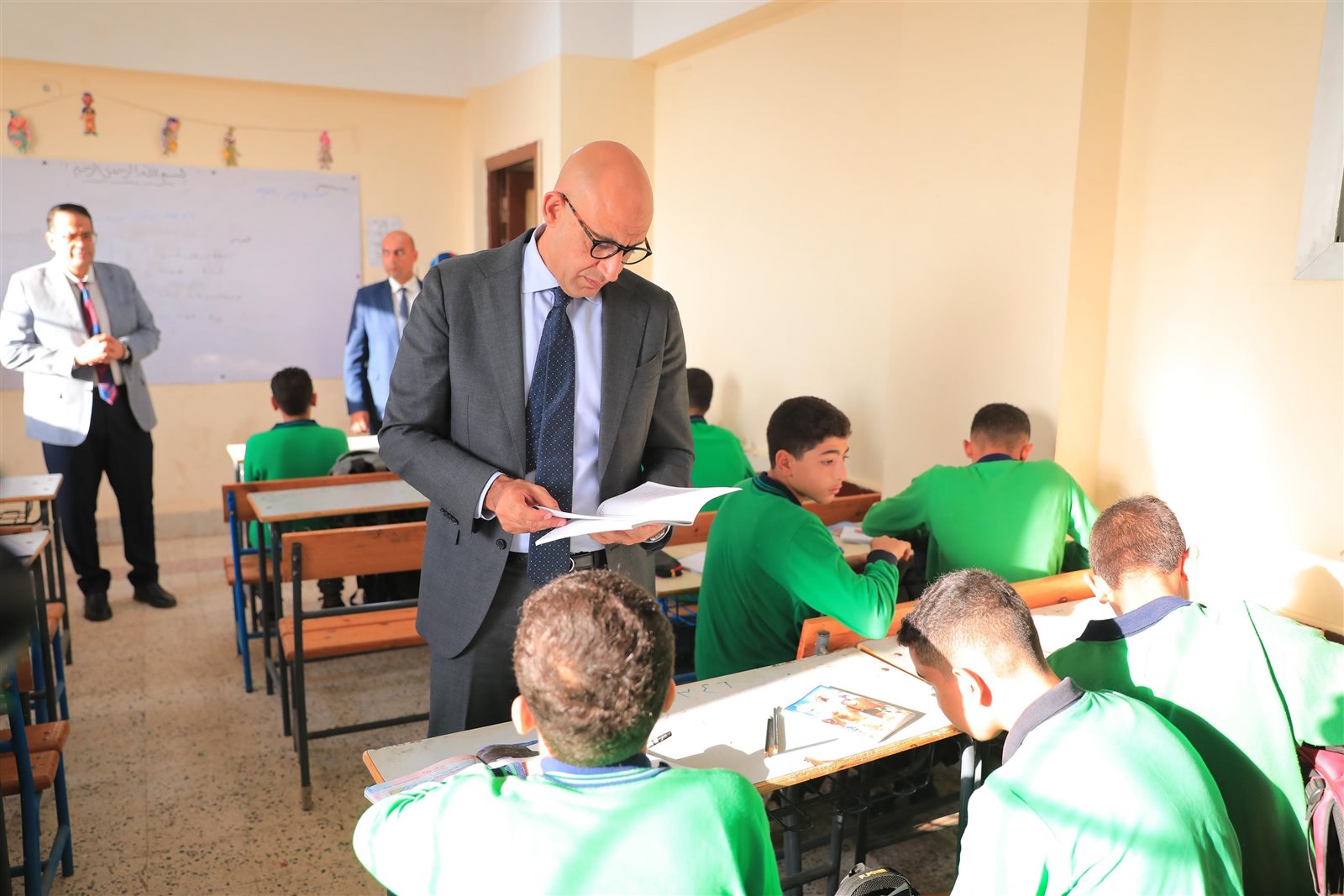 ثم توجه الوزير إلى مدرسة عمار بن ياسر الرسمية لغات التابعة لإدارة السنطة التعليمية، والتي تضم (١٢٠٠) طالب وطالبة، حيث حرص الوزير خلال الجولة على متابعة الكثافات الطلابية ونسب الحضور، والالتزام بتسليم الكتب الدراسية للطلاب، وأعمال الصيانة التي تمت بالمدرسة.