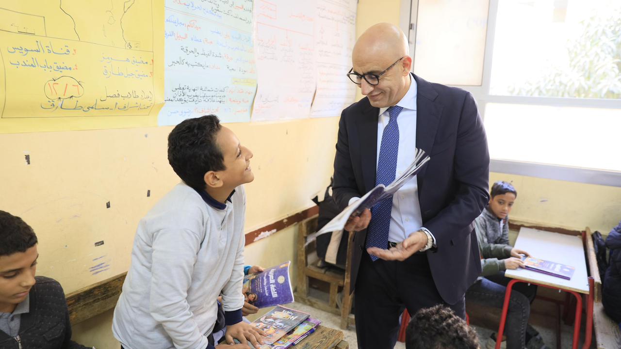 وتفقد الوزير خلال جولته داخل المدرسة فصولها الدراسية، وكتب الطلاب، وسجلات الحضور والغياب، كما تابع المستوى التحصيلي لعدد من الطلاب داخل الفصول.