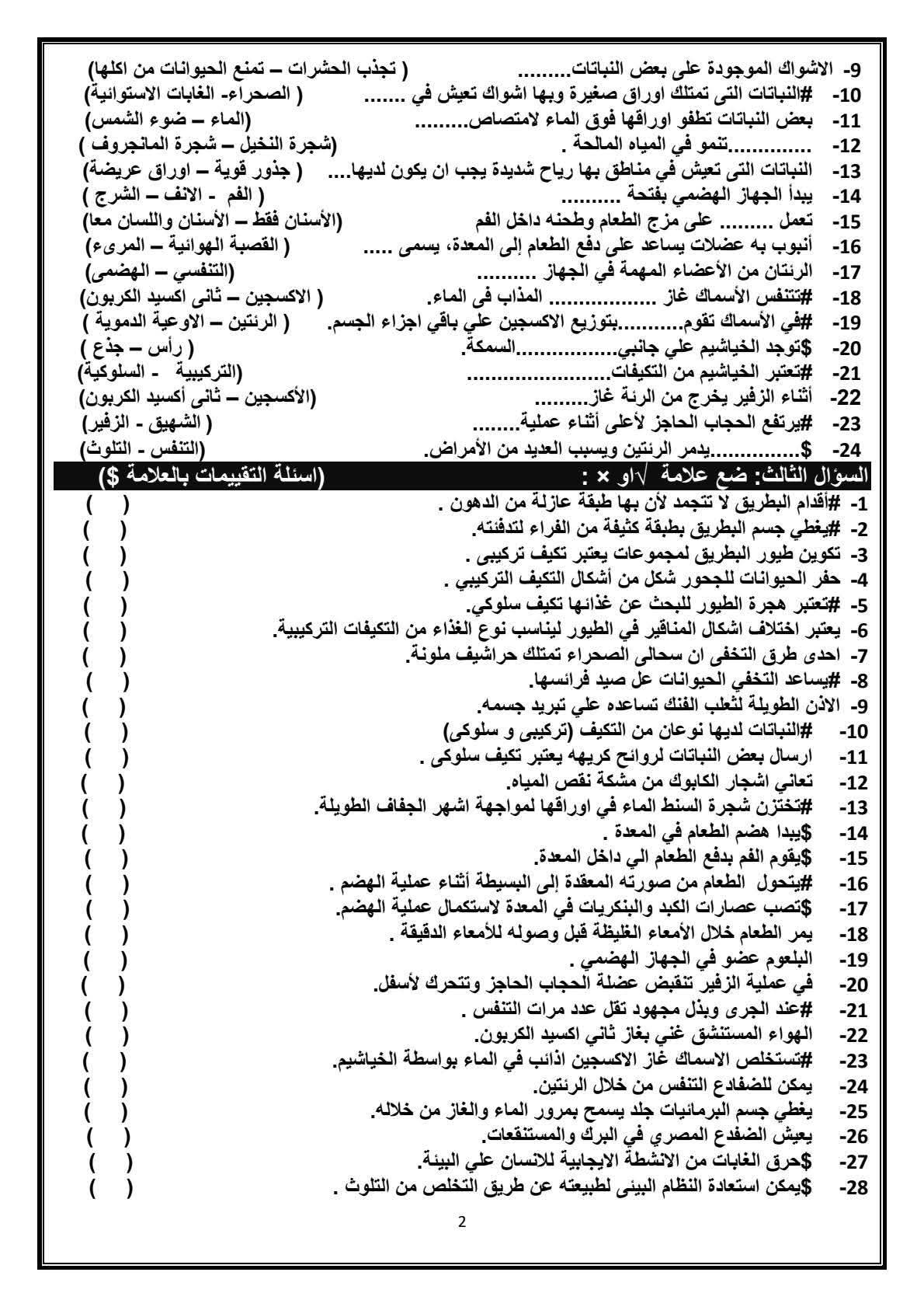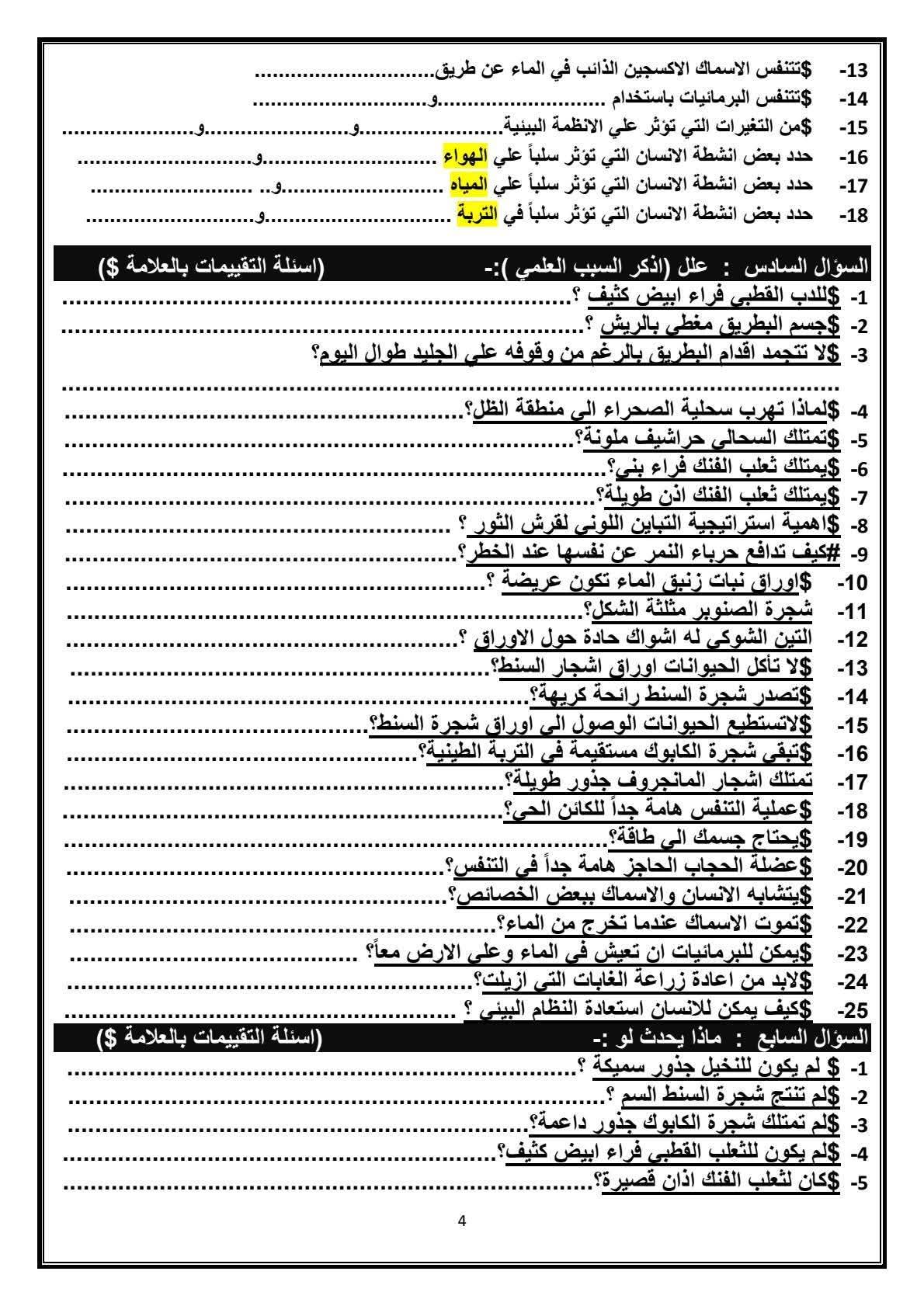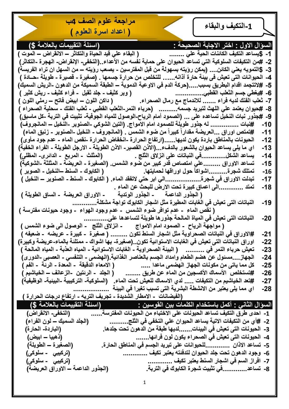 مراجعة شهر نوفمبر علوم للصف الرابع الابتدائي ترم أول 2025 2026