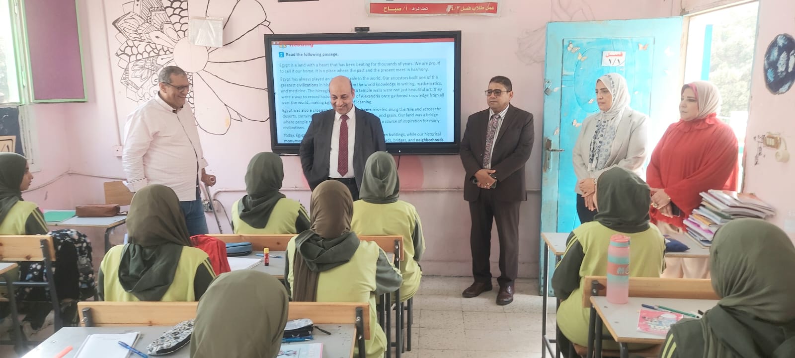 حيث كان فى إستقبالهم  جيهان عبد الرازق مدير عام الإدارة ومديرى المدارس.