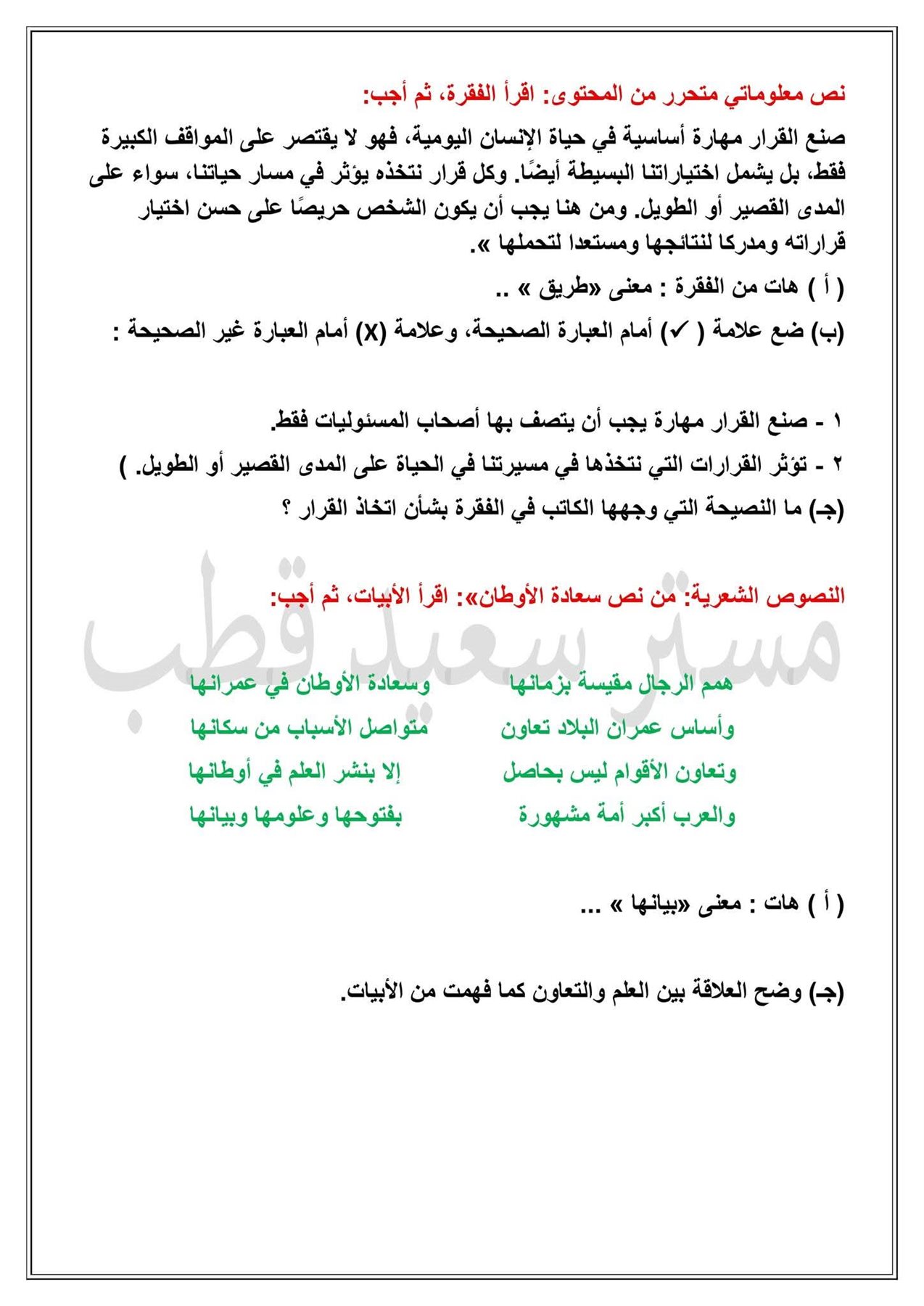 - الأربعاء 14 يناير: امتحان مادة الدراسات الاجتماعية.
