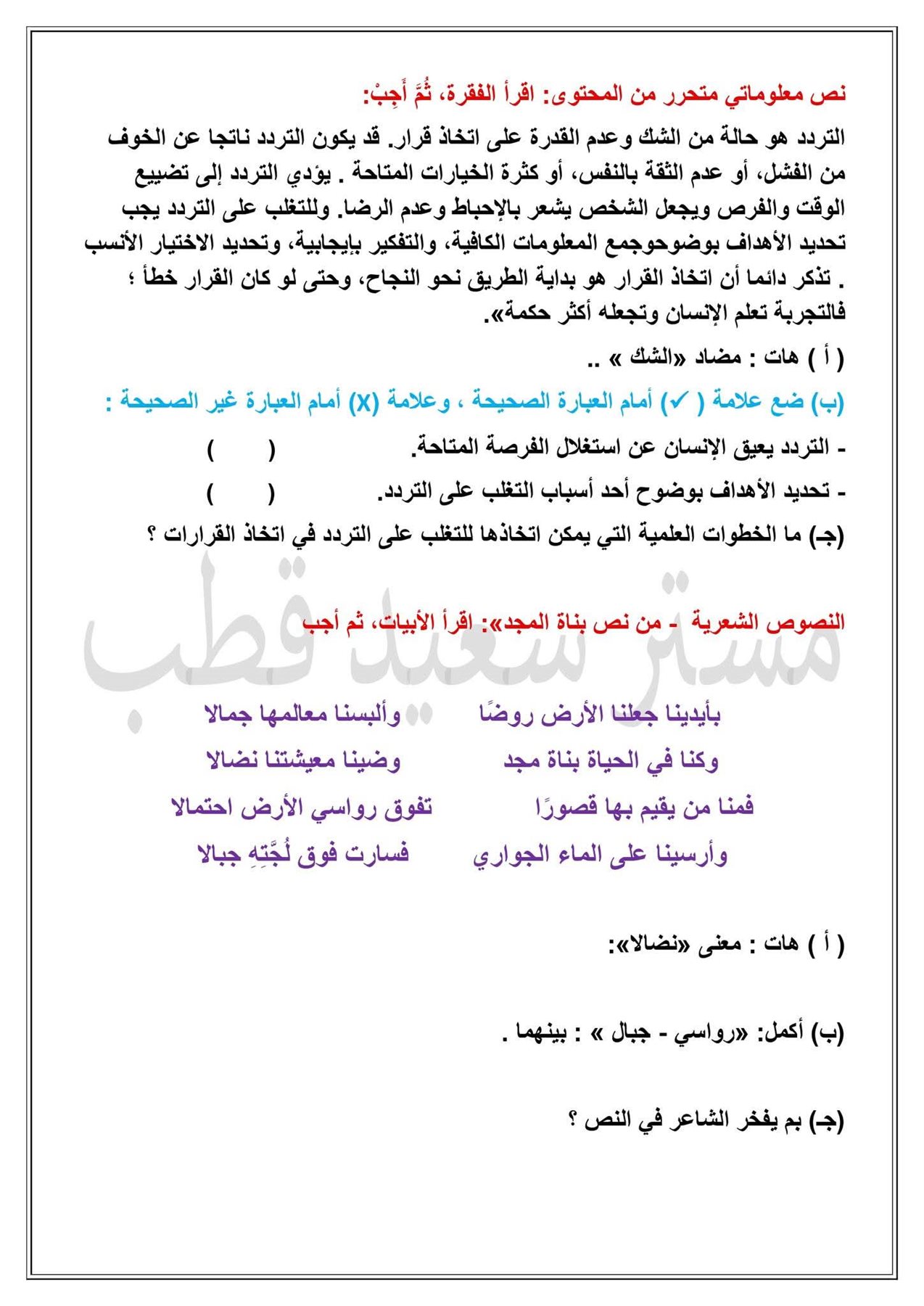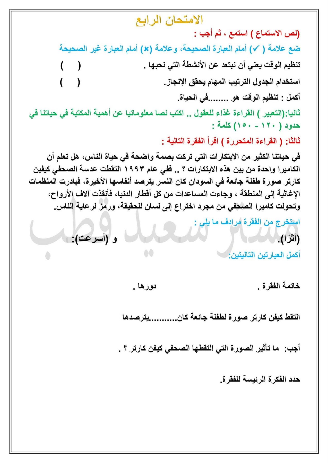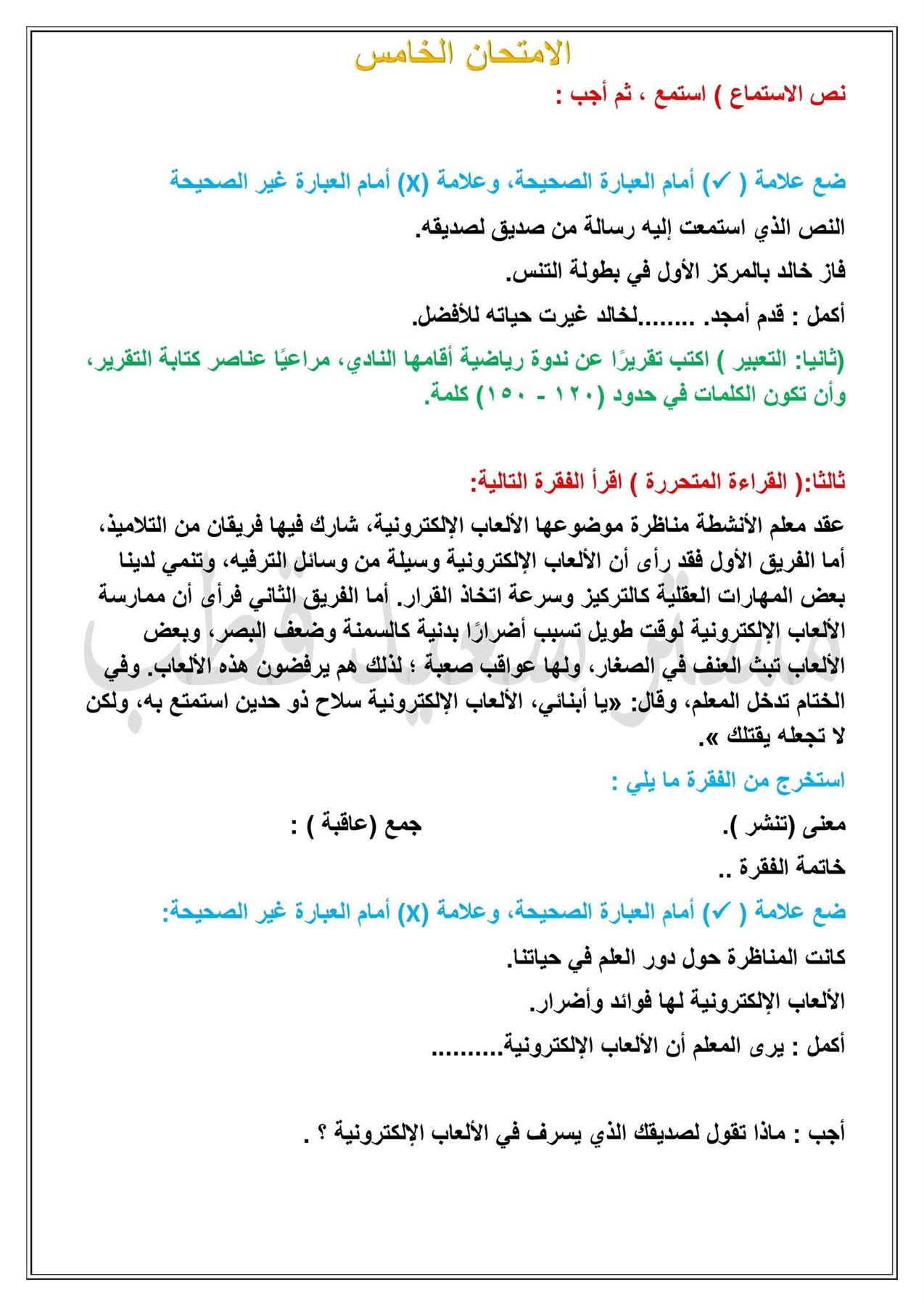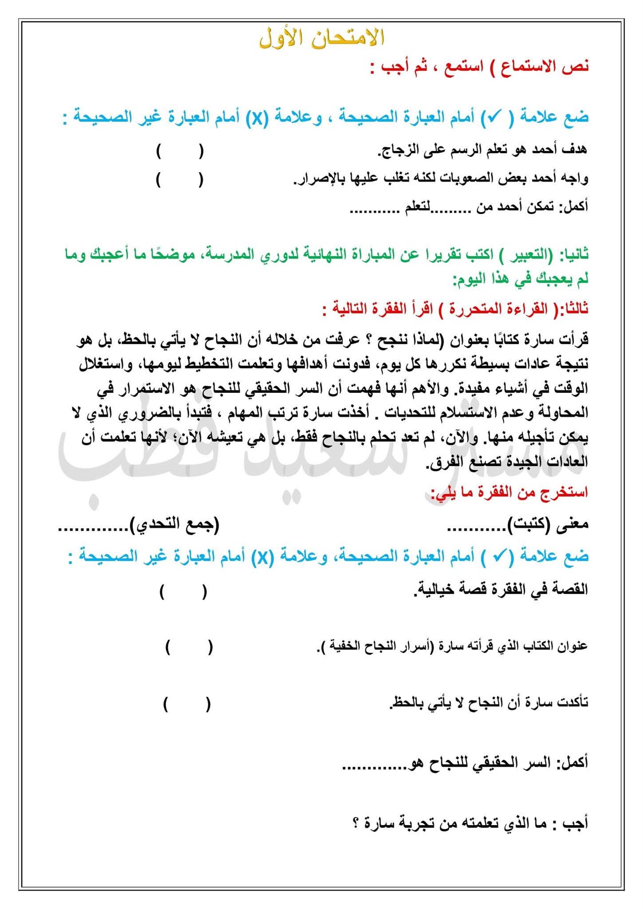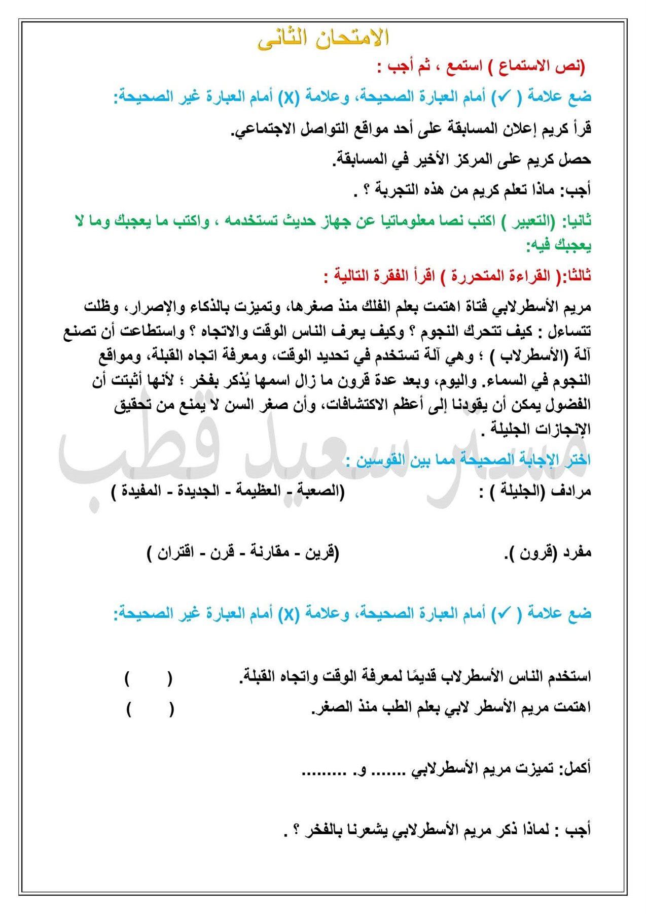 نماذج امتحانات الصف السادس الابتدائي 2026 الترم الأول