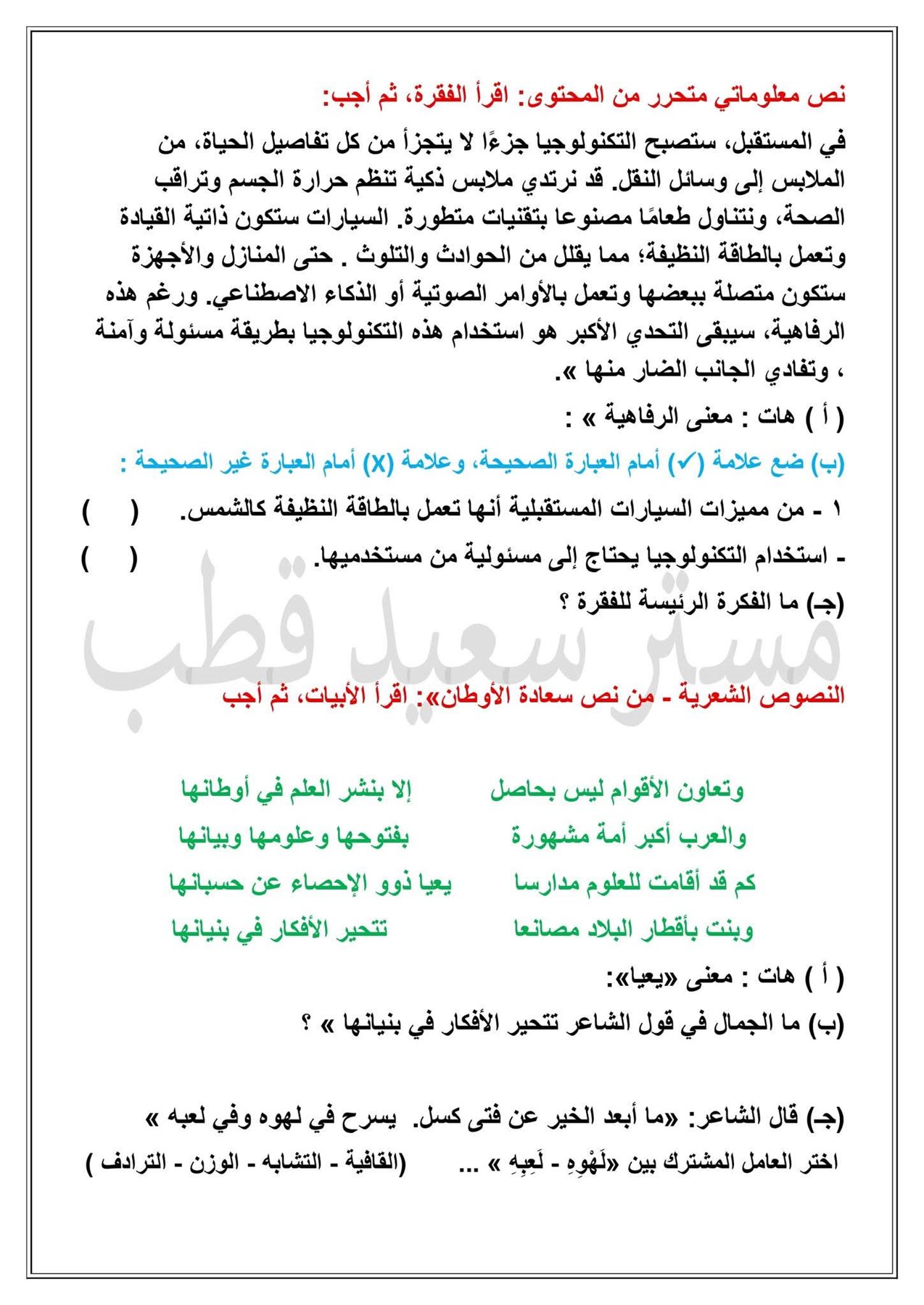 - الأحد 11 يناير 2026: امتحان مادة العلوم.