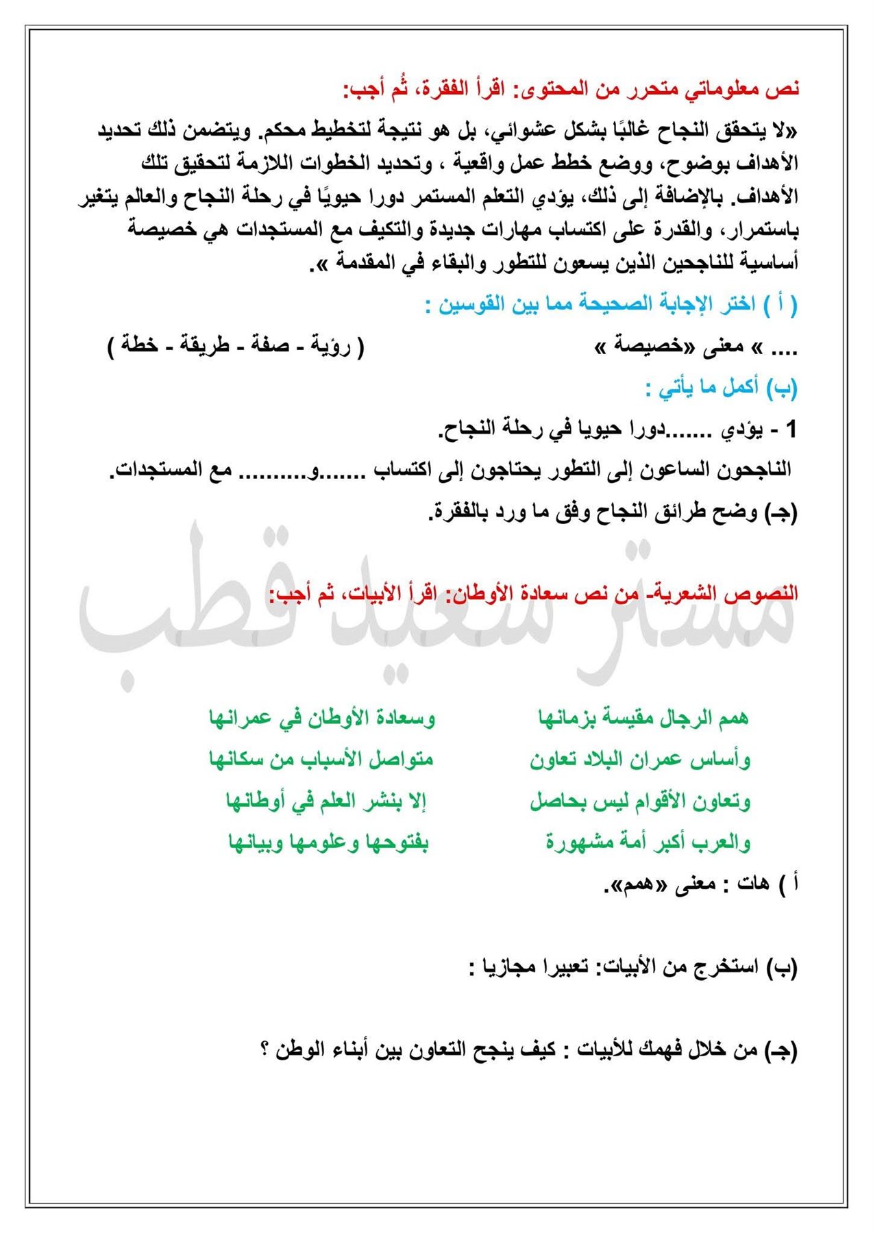 - السبت 10 يناير 2026: امتحان مادة اللغة العربية.