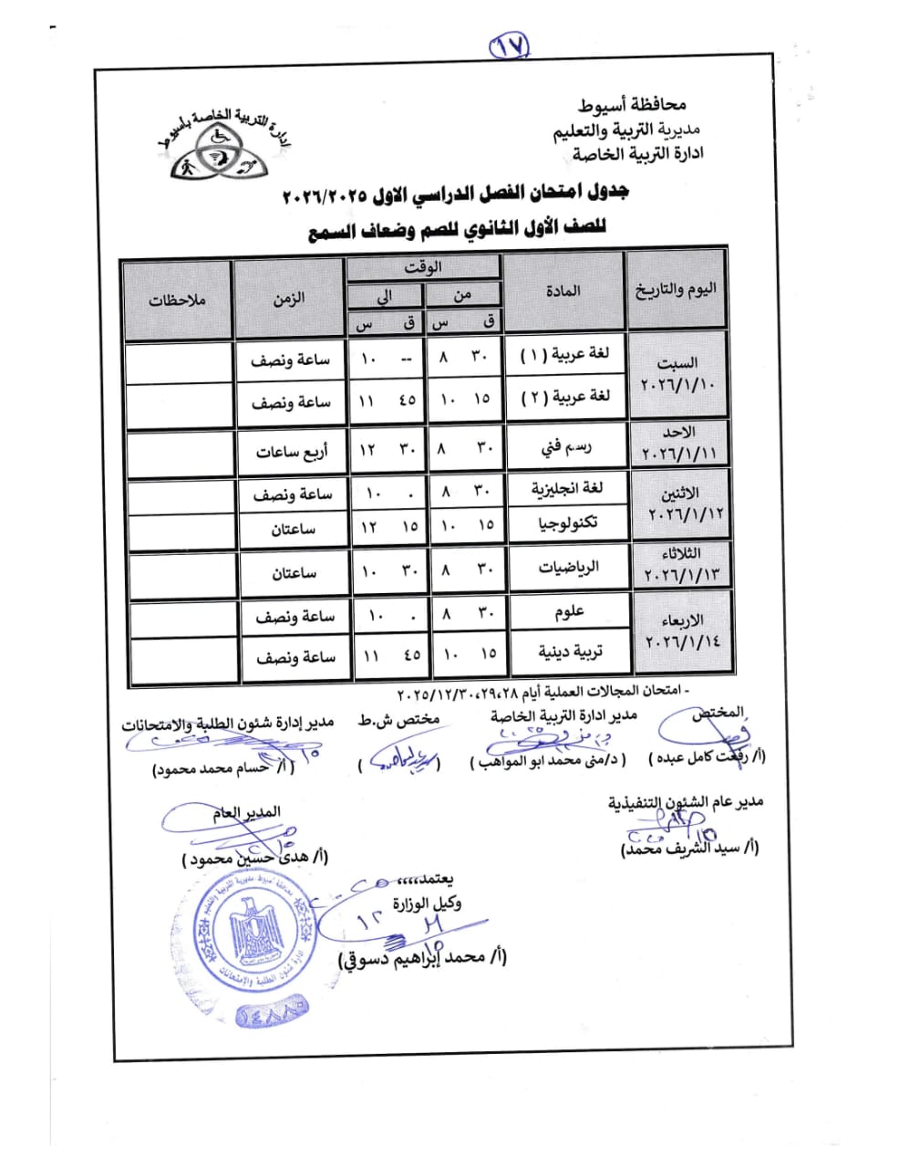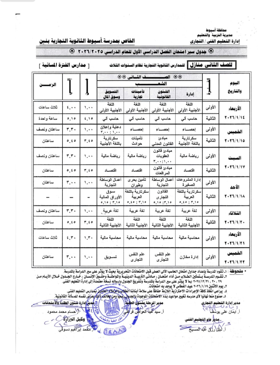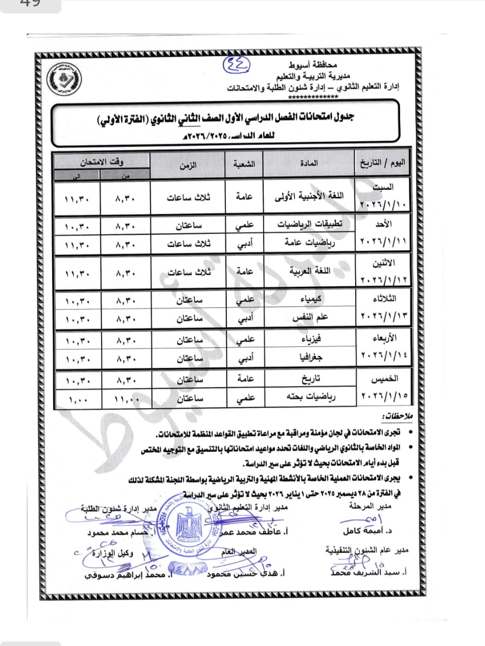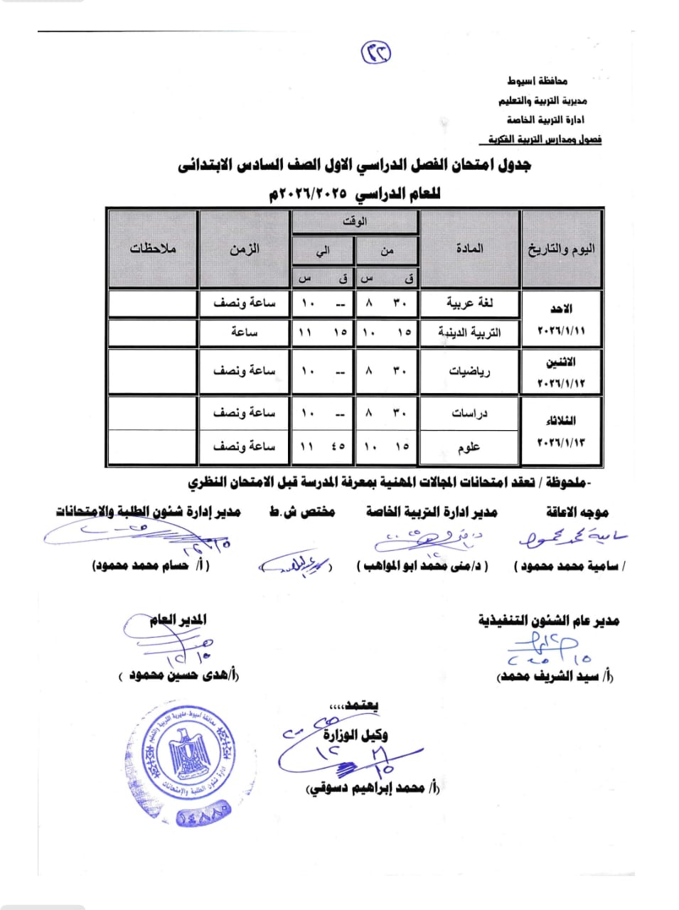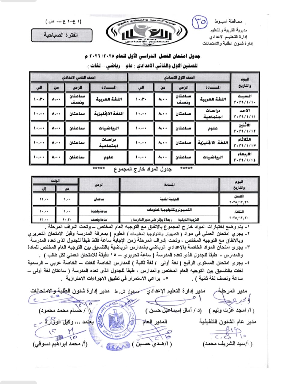 ننشر جداول امتحانات الفصل الدراسي الأول 2025-2026 بأسيوط