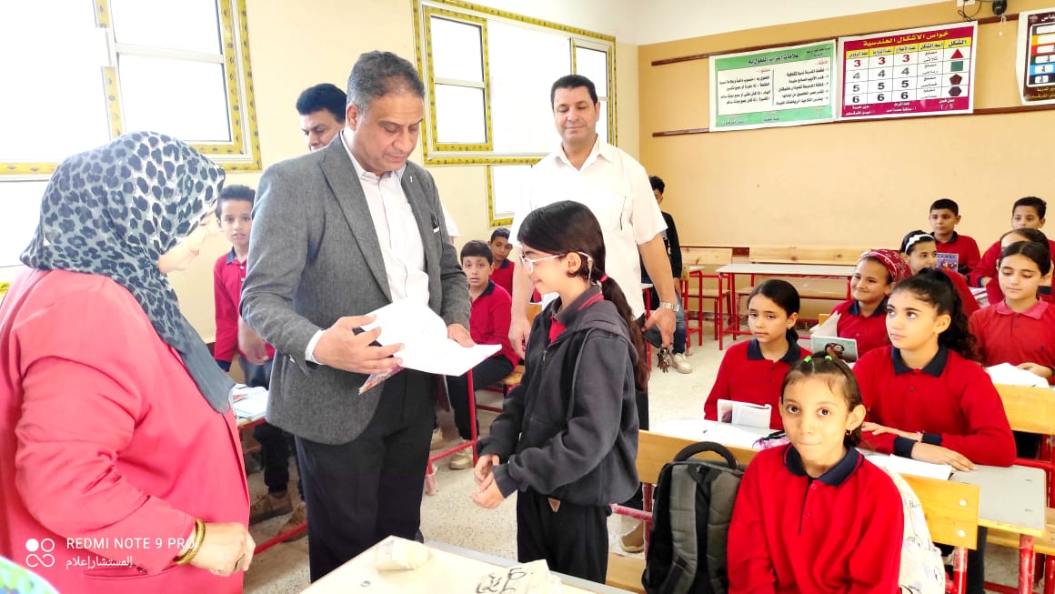 واطمئن على انتظام سير العمل وتحديث قوائم الفصول وانضباط سير العمل بالمدرسة، مشددا على ان تكون التقييمات جزء ثابت من الحصة الأولي وجزء من الحصة الأخيرة علي مدار الأسبوع